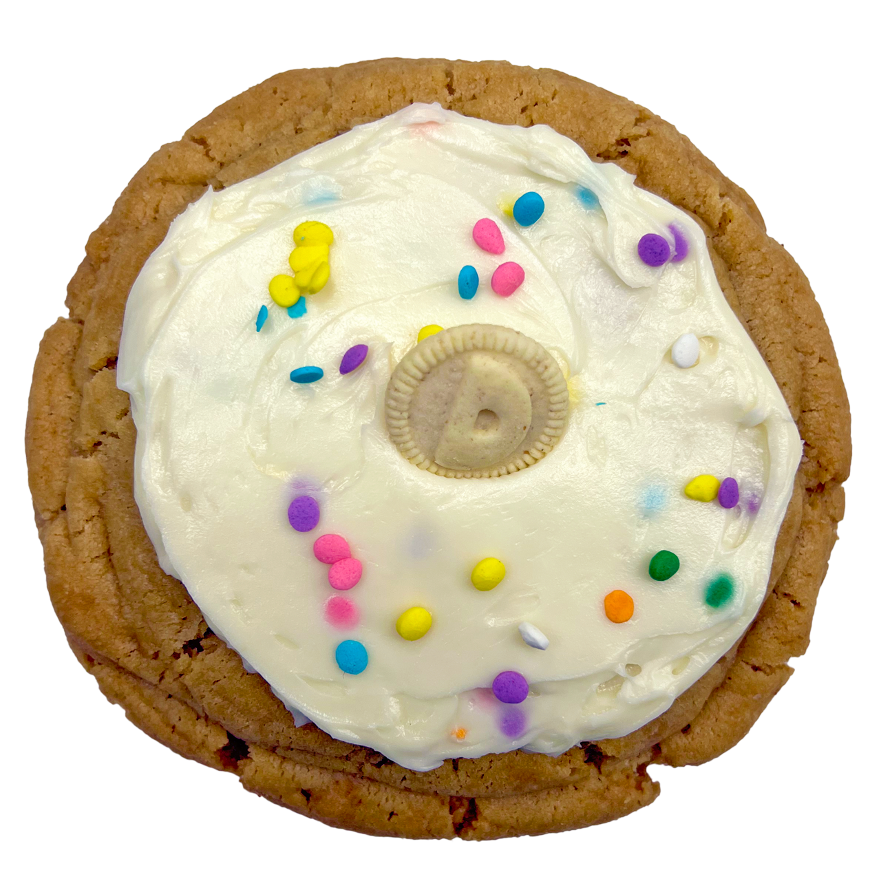 This is my childhood wrapped into one special cookie! A graham cookie base topped with the iconic sprinkle icing, more sprinkles & the Dunkaroo Cookie we all know and love!!