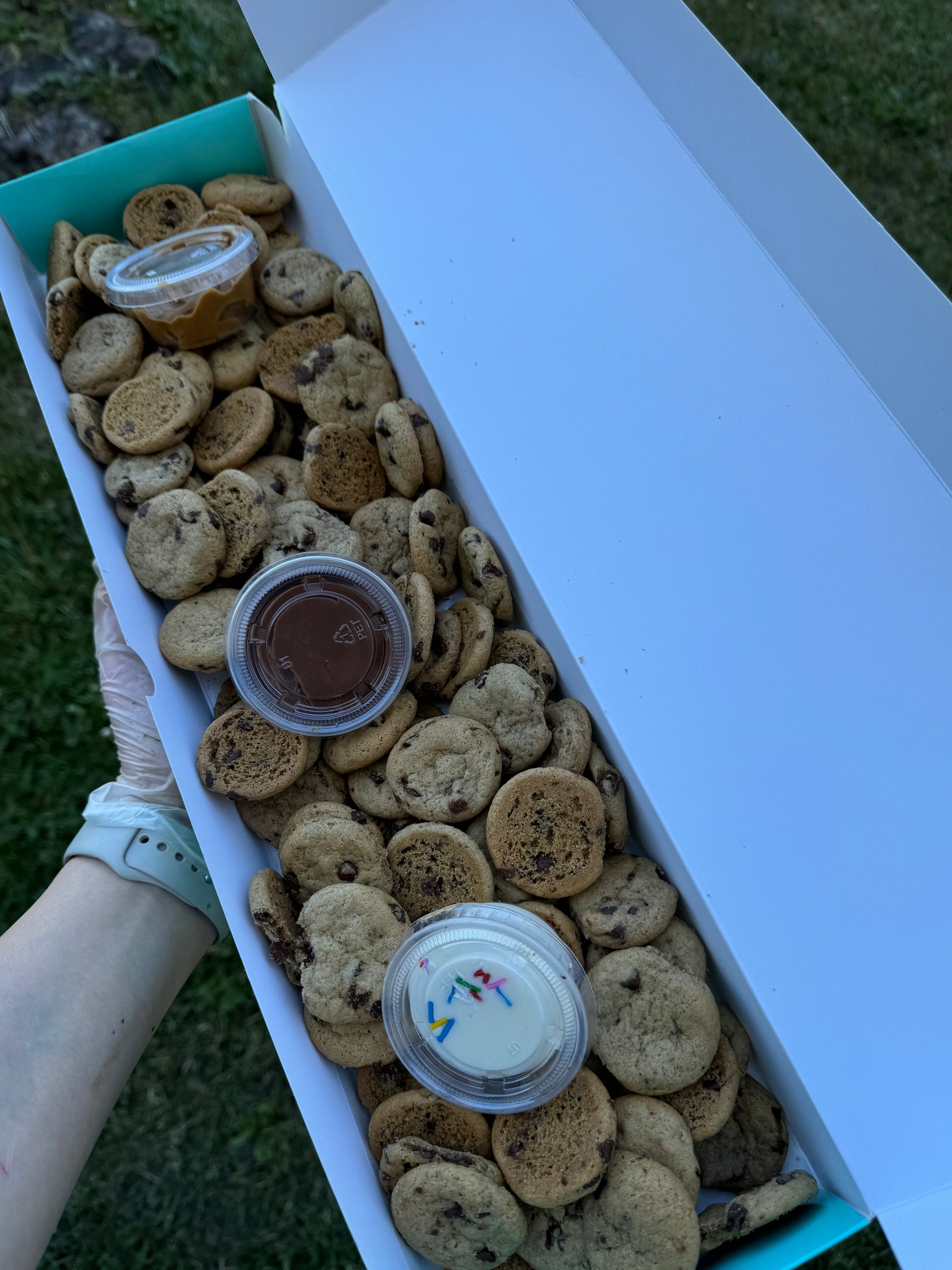 Micro chocolate chip cookies comes with 3 dips! Perfect for all your gatherings or to indulge in yourself… you can’t just have one 😆 Served 5-7 people