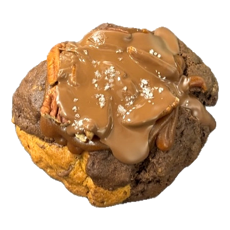 A classic candy favorite gets a massive upgrade! We start with a unique vanilla and brookie base that is packed with milk chocolate and pecans. But we didn't stop there — each cookie is loaded with gooey caramel, even more pecans, and a smooth chocolate shell to lock in all that goodness. It’s salty, sweet, and wonderfully chewy.